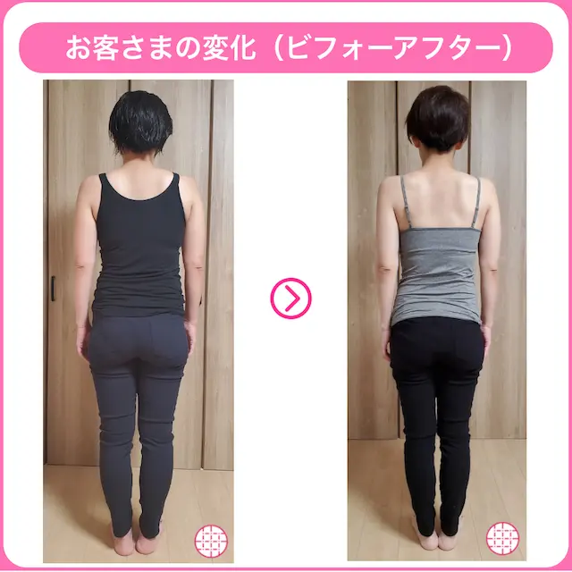 ビフォーアフターの画像ご覧にいただくと、ふくらはぎがきちんと細くなっているのがお分かりいただけると思います。