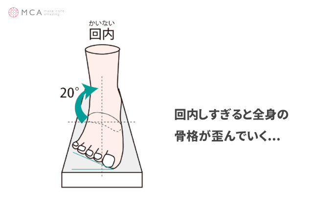 2つ目の理由は『足首が回内しすぎて骨盤と姿勢が歪むから』です。※回内は上図を参照。