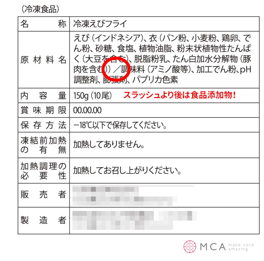 食品成分表を見て/(スラッシュ)の後に表記されているものは全て食品添加物です。