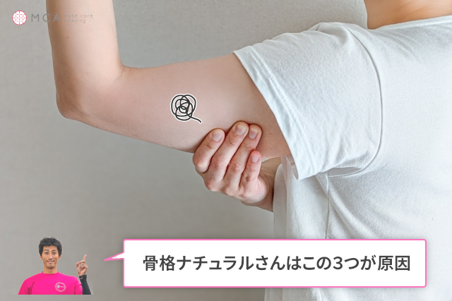 骨格ナチュラルタイプの二の腕が太い3つの原因は以下の通りです。