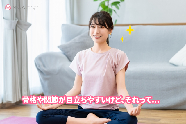 骨格ストレートタイプや骨格ウェーブタイプと比較して、骨格ナチュラルタイプは骨格や関節が大きいので骨の部分が目立ってしまうことで痩せすぎだと言われてしまいます。
