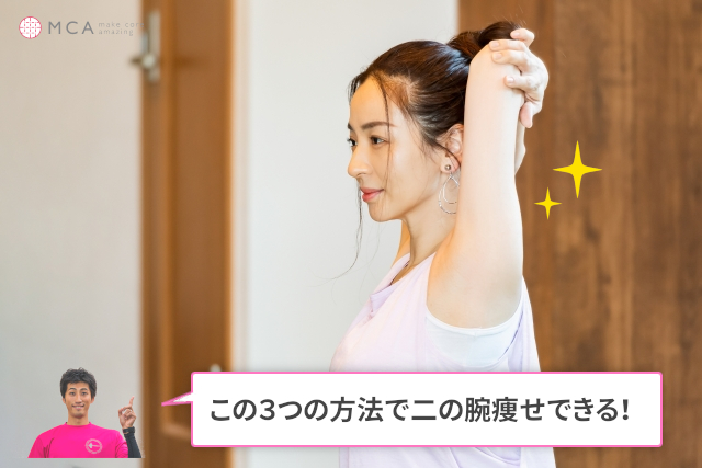 骨格ストレートタイプの二の腕が痩せた実際の方法は次の3つです。