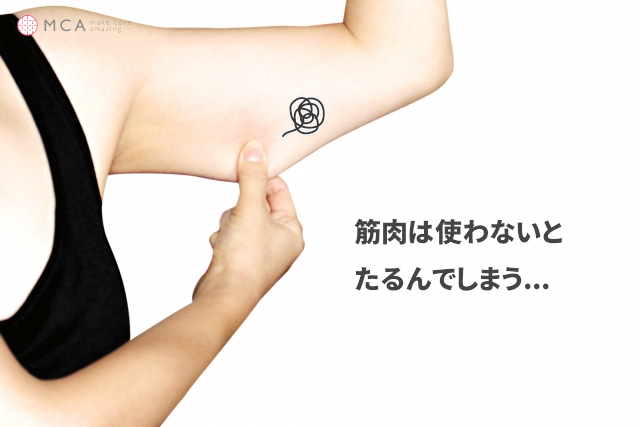 この筋肉がうまく使えないとたるんでしまい、二の腕が太くなってしまうんですね..。